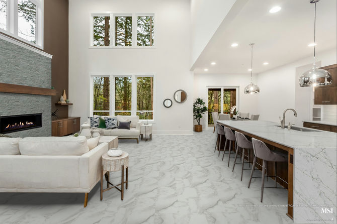 With a white background and thick smoky gray veins that meld beautifully, Calacatta Legend™ Luxury Vinyl Tile can help spruce up your environment. This 12x24 vinyl flooring offers the look of natural stone that’s sophisticated and always on-trend. These vinyl floor tiles are 100% waterproof and feature CrystaLux™, a protection layer that provides durability and longevity, protecting against everyday wear. Calacatta Legend is also coated with PietraTech™—an MSI exclusive polish that emulates smooth marble. An innovative 1MM pre-attached backing offers sound protection and comfort underfoot. In addition, it features a patented locking system for ease of installation. With “no acclimation” technology, this rigid core flooring allows for buy today, install today convenience. Add some glamor to the bedroom, bathroom, kitchen, hallway, living room and beyond with this stunning LVT flooring.